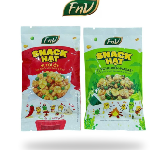 Snack hạt dinh dưỡng FNV 20g – mix hạt bắp, đậu phộng, đậu hà lan, chuối xanh… giòn ngon tự nhiên với 2 hương vị độc đáo: Rong biển Wasabicay nhẹ và Tỏi ớt đậm đà. Ăn vặt healthy, không chiên ngập dầu, giàu chất xơ, tiện mang theo khi làm việc, học tập hay tập gym.